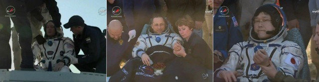 La tripulación del Soyuz, regresó con el balón del mundial